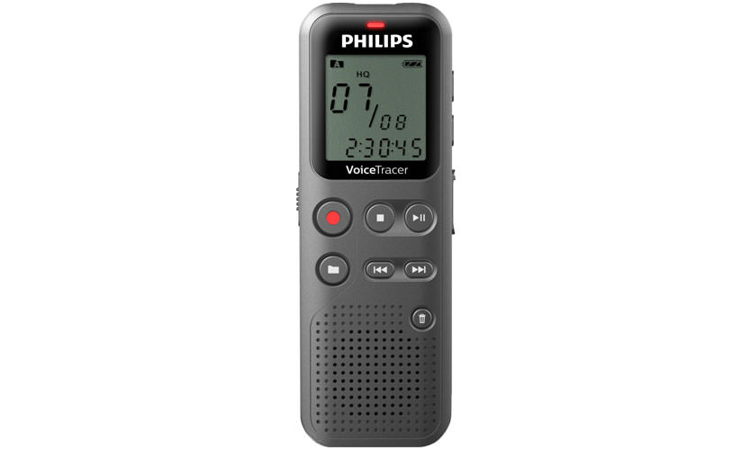 Dictaphone avec enregistrement sur un canal (mono). Le Philips DVT1110 a les mêmes capacités. La mémoire intégrée (4 Go) suffit pour fixer et stocker 50 heures d'enregistrement. Peut être utilisé comme un entraînement de chair. Le corps dispose d'un écran à cristaux liquides, qui reflète la charge de la batterie et la durée d'enregistrement restante. Le haut-parleur intégré vous permet de lire des enregistrements aux formats MP3 et WMA. Parmi les fonctionnalités supplémentaires figurent les fonctions d'activation vocale, d'enregistrement avec une qualité différente, de pause. Prix - 1990 roubles.