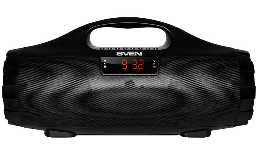 Conception profilée et arrondie avec poignée arrière intégrée. Ses caractéristiques sont similaires à celles du SVEN PS-460. Il présente des dimensions plus petites (34,6 x 15,1 x 13,2 cm), un haut-parleur de 66 mm et un subwoofer avec un haut-parleur de 93 mm. Reproduit une gamme de fréquences plus large - 60–20 000 Hz. La batterie 6000 mAh offre 6 heures de temps de travail. La puissance totale est de 34 watts. Pèse plus - 2,38 kg.
