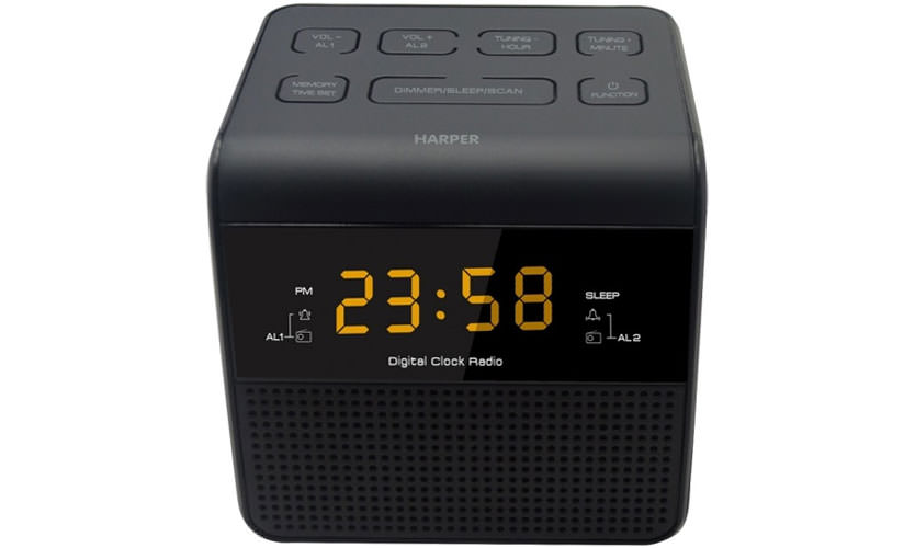 Radio-réveil pour ceux "qui ne peuvent pas être réveillés avec une arme à feu". Volume de signal élevé, répété pendant une heure. Vous pouvez définir 2 alarmes à la fois. Il accepte deux types de radiofréquences, comme le Philips AJ 3400. Les utilisateurs ont remarqué que la transmission du son n'était pas de très haute qualité en raison de la faible puissance de sortie des haut-parleurs de 0,5 W, et non de 2, comme dans le HARPER HRCB-7750.
