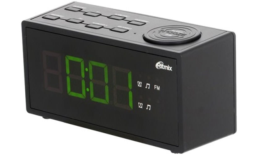 Un radio-réveil régulier à 20 préréglages comme le Ritmix RRC-1212, avec un écran lumineux, un snooze ou une station FM.