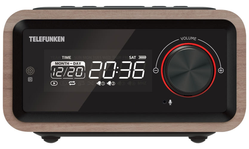 Gadget acoustique portable avec prise en charge Bluetooth, comme TELEFUNKEN TF-1582UB, avec trois options d'alarme, deux ports USB. Prix - 5500 roubles.