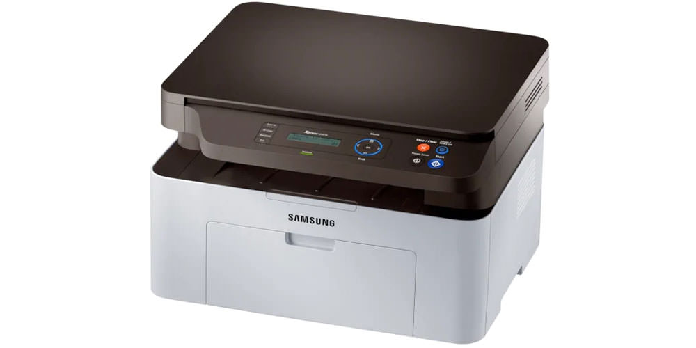 Imprimante multifonction de bureau de petite taille avec moins de ressources de travail - jusqu'à 5 000 pages par mois. Fonctionne, en plus de Windows, également avec iOS et Android. Vitesse d'impression de l'imprimante et du copieur - 18 pages par minute. Le scanner et le copieur sont pratiquement les mêmes que le Samsung Xpress M2070. Le modèle permet de transférer des données via Wi-Fi ou via USB. Peut imprimer à partir du téléphone.