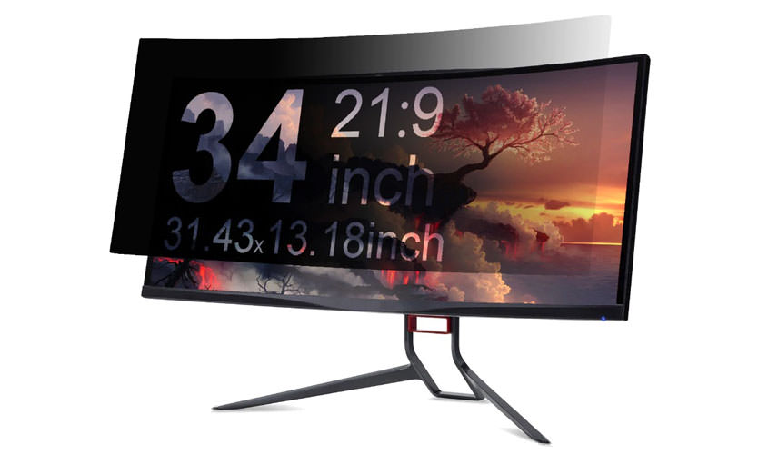 Écran LCD 34 pouces. Le rapport hauteur / largeur est de 21: 9. La conception sans cadre facilite la lecture de l'image. Poids du moniteur - 4,2 kg. Il peut être installé sur une surface horizontale ou monté sur un mur. L'ensemble comprend un autocollant en plastique transparent qui protège le moniteur de la saleté, de la poussière et des empreintes digitales. La technologie de filtre d'écran de confidentialité Fellowes PrivaScreen ™ a été mise en œuvre. Lorsqu'elle est vue de côté (à un angle de 45 à 60 degrés), l'image sera sombre. Prix - 13 mille roubles.