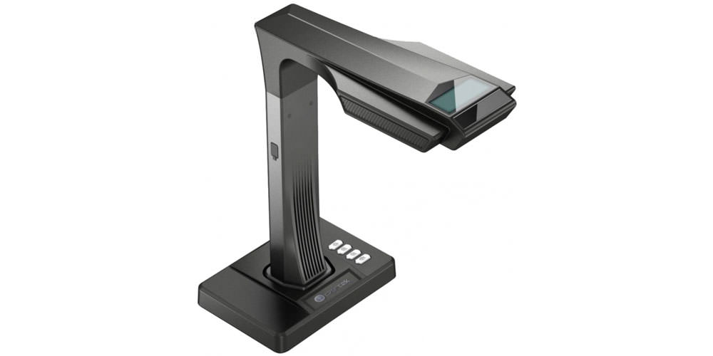 Scanner de caméra avec capteur CMOS. Contrairement au modèle Plustek OpticFilm 8200i SE avec une interface USB 2.0, cet appareil peut en outre être connecté via Wi-Fi. Compatible PC, stockage intégré de 1 Go. Fonctionne avec du papier de différentes tailles (maximum - format A3). La profondeur de couleur est de 24 bits. Résolution - 4608 × 3456 dpi. Vitesse de numérisation (en noir et blanc et en couleur - 1 feuille par seconde). Formats de copie de numérisation - JPG, PDF, TIFF, MJPEG, YUV. La numérisation d'objets en vrac est possible. Prix - 32 900 roubles.