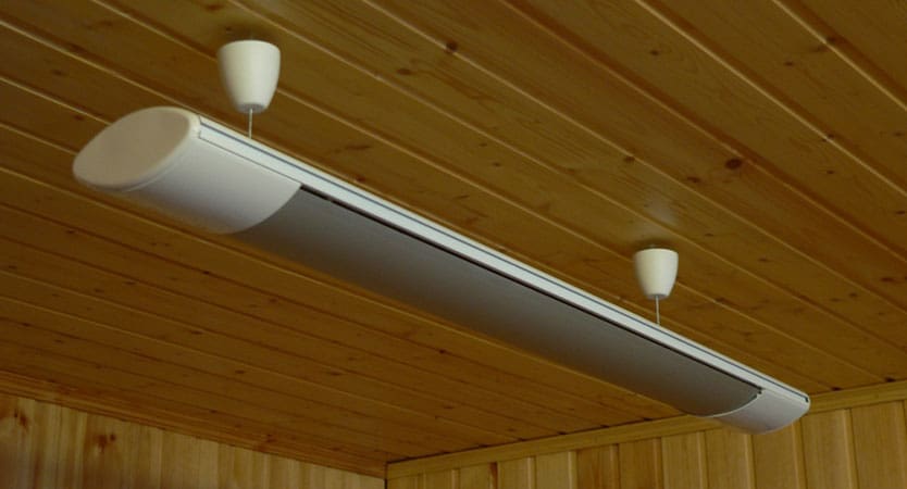 Les modèles de chauffage infrarouge se composent d'un émetteur et d'un réflecteur. L'élément chauffant est protégé par une grille pour éviter les brûlures. Les radiateurs infrarouges, comme les convecteurs, sont fixes et portables. Mais, contrairement aux convecteurs, un appareil infrarouge peut être accroché à la fois au mur et au plafond. Les radiateurs infrarouges sur pied peuvent être facilement déplacés, mais avec précaution, réorganisez-les d'un endroit à l'autre ou emportez-les avec vous dans le pays. De plus, les dimensions de ces appareils de chauffage sont un peu plus petites que celles des modèles à convecteurs. Lorsqu'il est allumé, vous ressentirez immédiatement la chaleur qui restera dans la pièce pendant un certain temps, même après avoir éteint l'appareil.