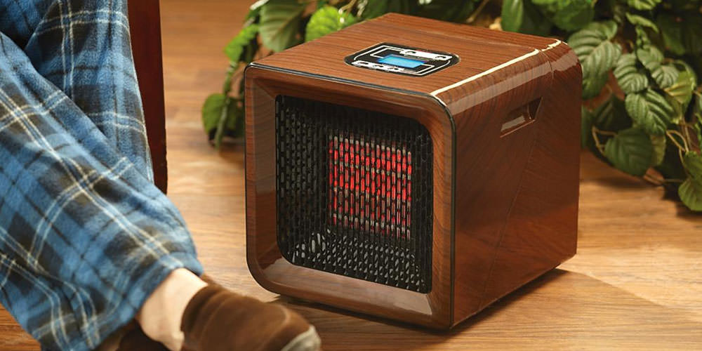 Le classement est ouvert par un radiateur IR soigné et mignon pour le placement du sol / table. Puissance - 800 W, chauffe une pièce jusqu'à 10 m2... Il fonctionne en 1 mode de chauffage, il y a un réglage de puissance et un interrupteur avec un indicateur lumineux sur le boîtier. Le radiateur est équipé d'un système d'arrêt de surchauffe ou de retournement et d'un thermostat. Une poignée est fournie à l'arrière pour faciliter l'utilisation et le transport.