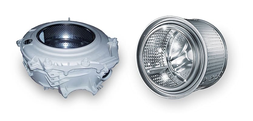 Acier inoxydable. Un matériau commun pour la fabrication de réservoirs de machines à laver. Il est utilisé à cette fin depuis longtemps.