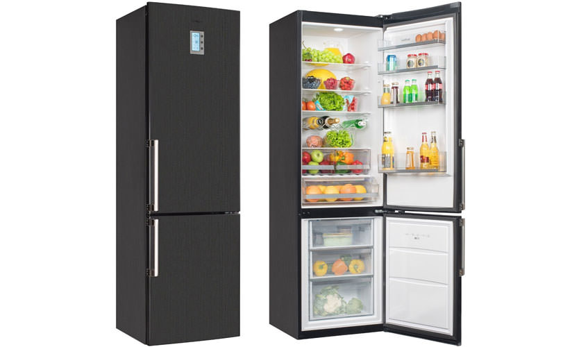 Réfrigérateur noir de 89,2x77,1x183 cm.Deux compartiments du congélateur sont situés en bas (volume total - 211 litres). Compartiment réfrigéré pour 394 litres avec zone de fraîcheur sèche. Possède des modes de congélation et de vacances superbes. Il y a un écran sur le corps. Il y a une indication de température. Une sécurité enfants est fournie. A une machine à glaçons. Ne chauffe pas jusqu'à 17 heures sans énergie. Gèle 9,5 kg par jour. Classe climatique - ST. Classe d'économie d'énergie A. Consommation - 560 kW / h par an. Poids - 107 kg. Bruit - 37 dB. Prix - 121 000 roubles.