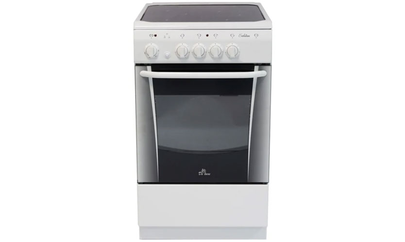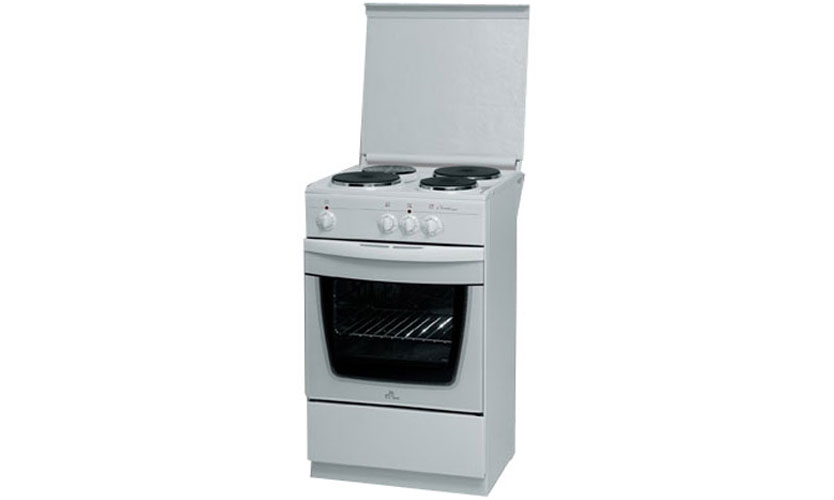 Modèle (50x60x85 cm) pour 4 brûleurs électriques (un accéléré). Méthode de contrôle manuel. Le four d'une capacité de 54 litres est éclairé. Il y a une minuterie. Prix: 10220 roubles.