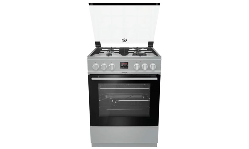 Cuisinière à gaz blanche mesurant 50x60x85 cm Le four d'une capacité de 71 litres est équipé d'une porte pliante à double vitrage (comme tous les modèles de la cote). A un rétroéclairage. La surface de travail est en émail. Dispose de 4 brûleurs, dont l'un est un chauffage rapide. Actionné par des commutateurs rotatifs. Il n'y a pas de verrou de sécurité. Dans la partie inférieure, il y a un compartiment de rangement pour la vaisselle, comme tous les poêles Gorenje. Le nettoyage est traditionnel, comme tous les modèles décrits ci-dessous.