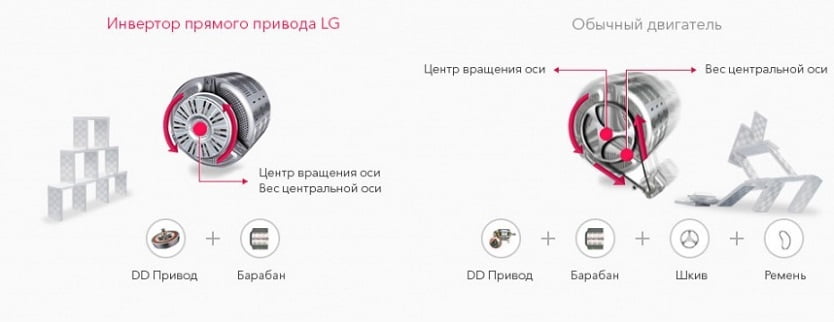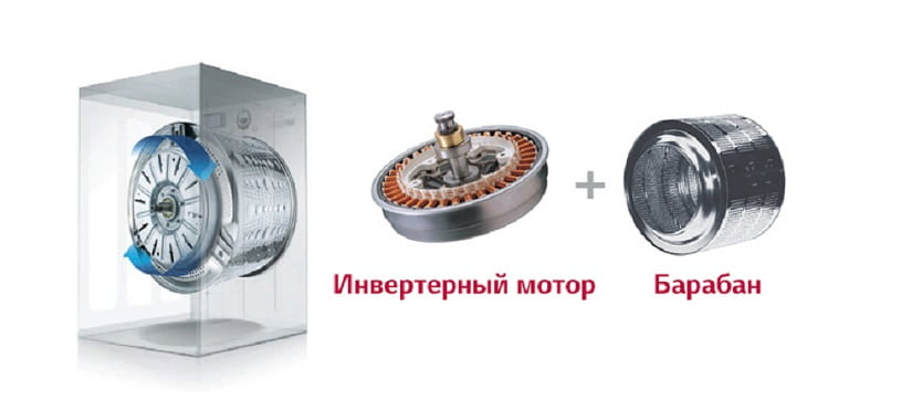 - Du fait que le moteur à entraînement direct dans la "laveuse" est situé directement derrière le tambour, et non en dessous ou sur le côté, de telles machines peuvent avoir de grandes dimensions.