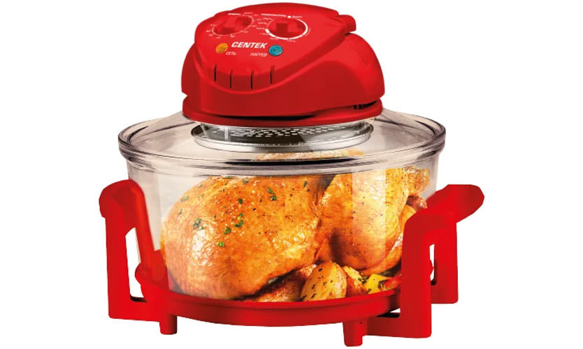 L'appareil CENTEK, comme la plupart de ses concurrents, a une puissance de 1400 W, un volume de 12 litres, extensible à 17 litres. La principale différence par rapport au FIRST AUSTRIA FA-5030-1 et au DELTA DL-6006В est la fonction de chauffage turbo 3D. Le modèle est équipé d'un régulateur de réglage de la température avec un maximum de 250 degrés, d'un régulateur de réglage de la minuterie d'une valeur maximale de 90 minutes, d'un indicateur de puissance et de chauffage, d'une poignée de couvercle. L'ensemble avec l'airfryer est fourni avec des pinces pour tremper et retirer les aliments, une bague d'expansion, des grilles supérieure et inférieure, un support de couvercle.