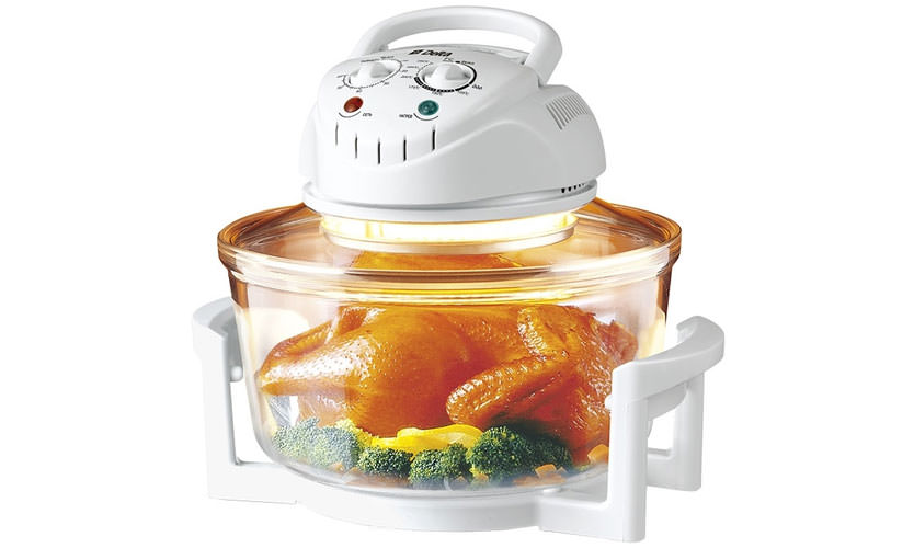 Notre classement est ouvert par le modèle du fabricant russe DELTA, fabriqué en blanc, d'une puissance de 1400 W et d'un bol de cuisson d'un volume de 12 litres (il peut être étendu à 17 litres) en verre résistant à la chaleur de haute qualité. La technologie de chauffage par convection est mise en œuvre dans l'airfryer - traitement thermique des produits avec un courant d'air chaud. La température maximale de chauffage est de 250 degrés. L'appareil est équipé d'indicateurs lumineux de fonctionnement et de chauffage, d'une minuterie rotative pendant 60 minutes. Parmi les fonctions figurent le maintien automatique de la température, le mode autonettoyant, l'arrêt automatique lorsque la poignée est soulevée, le blocage d'une activation accidentelle, la température de cuisson réglable. L'ensemble comprend des grilles hautes et basses, des pinces pour leur extraction.