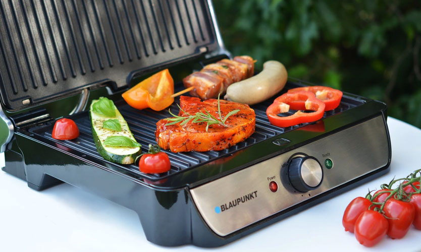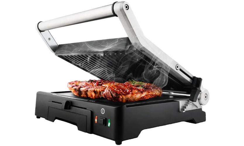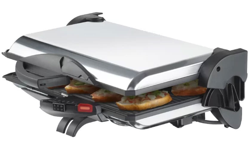 - Contact et non-contact. Les premiers en apparence ressemblent à une presse, où le produit est disposé sur la partie inférieure et la partie supérieure est enfoncée. Les deux parties sont chauffées, ce qui entraîne le processus de cuisson. Les seconds sont équipés d'un émetteur IR, il n'y a pas de couvercle dans un tel appareil, le produit est préparé à l'aide de rayons.