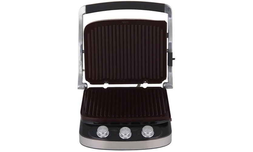 En tant que four, il ouvre des possibilités pour cuire et rôtir une variété de produits. Pour eux, utilisez une plaque à pâtisserie de marque spéciale ou des formes en aluminium (achetées séparément). Pour le barbecue, il s'ouvre à 180 degrés, des éléments chauffants sont intégrés dans les panneaux, chauffent uniformément les deux moitiés une fois ouverts.