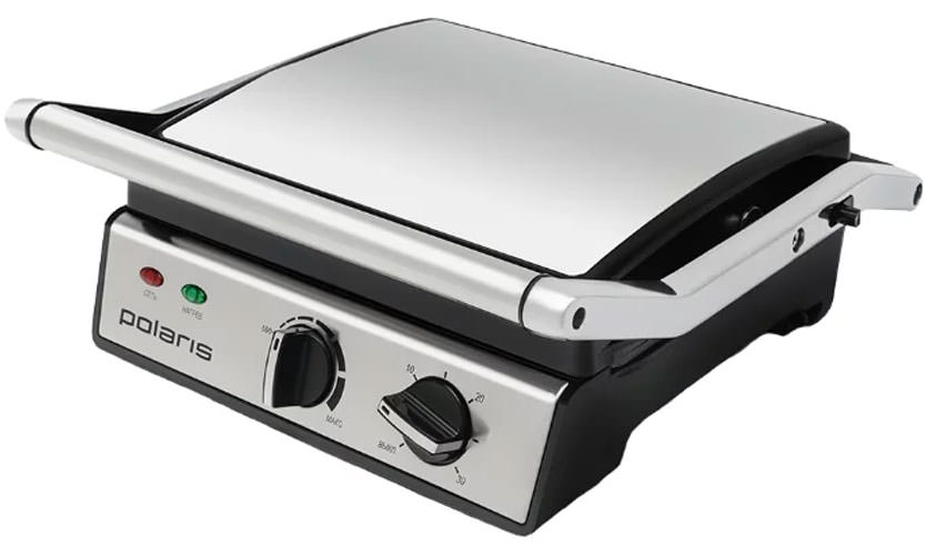 Un autre brent russe dans notre TOP. Le gril électrique de cuisine Polaris PGP 0702 de type contact avec revêtement antiadhésif BIOTORE offre un niveau de friture idéal du produit. Dimensions - 33 x 33 x 15 cm Poids - 3,64 kg. Puissance - 2000 W. Prix - 3800–4200 roubles.
