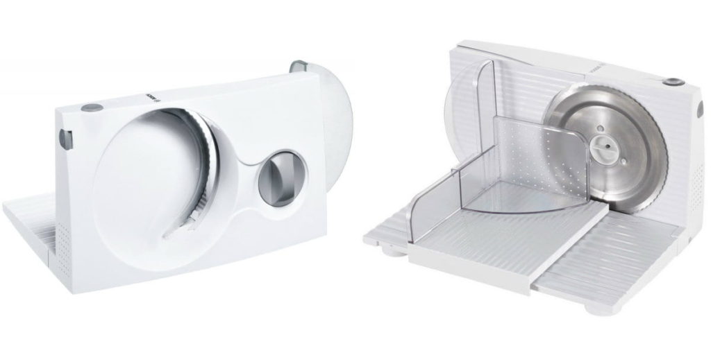 Un modèle économique mais agréable à utiliser. Excellente puissance - 150 W, couteau aiguisé par vague, trois modes de fonctionnement à grande vitesse. Dans l'ensemble, l'appareil est très léger, fonctionnel et sûr (il y a un clip produit pour protéger les doigts). Cependant, avant d'acheter cette trancheuse particulière, il convient de prendre en compte le bruit de l'appareil et le fait que les produits souples n'ont pas toujours une coupe uniforme.