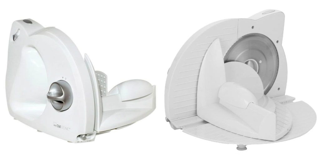 Trancheuse soignée et silencieuse. Assemblage turc de haute qualité, coupe parfaite des produits mous et durs, fonctionnement stable sans nuire au moteur. La protection de l'appareil est également parfaitement mise en œuvre - un bouton de verrouillage et un support de poignée pour les morceaux tranchés. La puissance n'est pas terrible, seulement 110 watts. Mais je suis satisfait de la large gamme d'épaisseurs de tranchage, du couteau en acier de haute qualité et de la régulation électronique de la vitesse de la trancheuse.