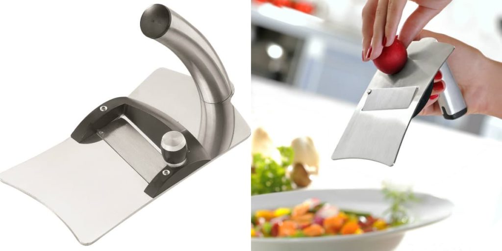 Cet appareil est fabriqué en Allemagne et est de haute qualité. À l'extérieur, l'appareil se compose d'une poignée en plastique robuste et d'une lame double face parfaitement affûtée. Avec l'aide de Tartufolo, vous pouvez couper en tranches égales les aliments mous et durs - fromages de différentes variétés, champignons, plats de viande, légumes et fruits. Cette trancheuse va au lave-vaisselle et est très facile à utiliser.De plus, il ne prend pas beaucoup de place dans votre cuisine et ne nécessite pas de prise pour fonctionner.