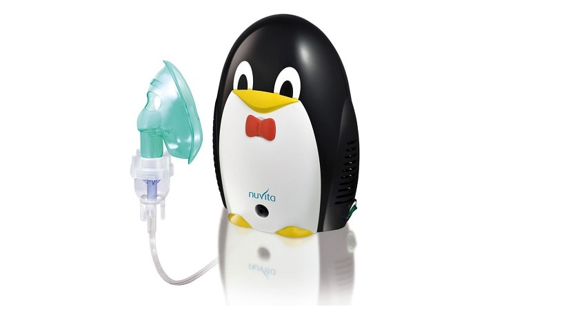 Nébuliseur en forme de pingouin jouet, mesurant 125x188x180 mm avec un récipient de 7 ml. Débit d'air 8 l / m.La taille des particules peut être réglée dans la plage: 1 à 10 microns. Leur vitesse d'expansion est de 0,2 ml par minute. Equipé de masques et d'accessoires pour la bouche et le nez de taille universelle et pour l'enfant. Il est allumé à partir de 220 V. Il exécute la fonction principale en 30 minutes. Bruit 54 dB. Poids 1,5 kg. Prix: 2863 roubles.