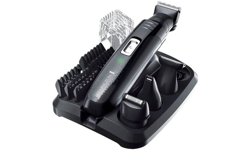 Ouvre le jeu de coupe-herbe multifonctionnel TOP de la société Remington. Comprend 5 accessoires de longueur fixe - 1,5, 3, 6, 9, 12 mm, coupe-nez et oreille linéaire, mini rasoir à mailles et taille-bordures. Peut être lavé à l'eau. Un support compact est fourni pour le stockage des accessoires. Lames revêtues de titane, auto-affûtantes. Autonomie de la batterie jusqu'à 40 minutes, la charge prend 16 heures. Il y a une indication de charge. Budget fixé, coût moyen - 2000 roubles.