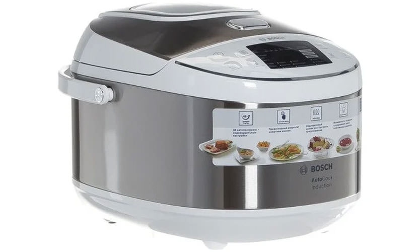 Un modèle de la société allemande Bosch avec un bol standard d'un volume de 5 litres, avec un revêtement en téflon: rien n'y colle, ne brûle pas.Facile à nettoyer, mais très sensible aux rayures. Puissance - 1200 W, comme dans le modèle Tefal RK807D32. 48 programmes de cuisson automatique sont plus que Tefal (21) et même plus que les modèles Redmond (11 au total). Parmi les fonctions figurent le maintien au chaud, le démarrage différé, le réglage du temps de cuisson. La particularité du multicuiseur est le chauffage par induction 3D pour un chauffage plus rapide et plus uniforme des produits avec une haute précision de maintien de la température.