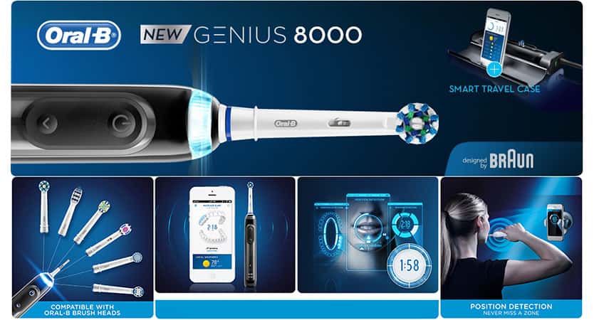 La brosse à dents électrique Oral-B Pro Genius 8000 sera une véritable aubaine pour ceux qui veulent des dents et des gencives saines, ainsi qu'un sourire étincelant, ne passant que 2 minutes le matin et le soir.