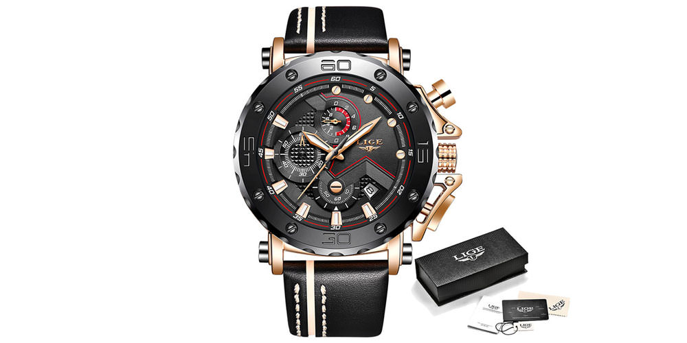 Modèle pour une main masculine massive, lourde, dimensionnelle. Beau cadran lumineux, mouvement précis. Comme les autres modèles de classement chinois (le même LIGE 9899), il ne correspond pas à la caractéristique de protection contre l'eau - 3 ATM. Les utilisateurs ne recommandent pas de nager dans la montre, mais vous pouvez vous laver les mains avec.