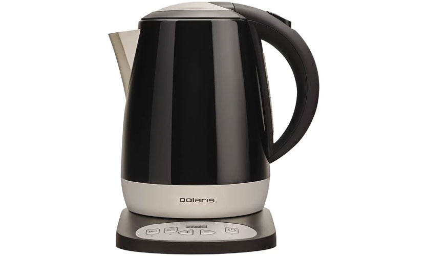 Bouilloire électrique d'une capacité de 1,7 litre. Fabriqué en métal de couleur foncée. La température peut être sélectionnée parmi 5 modes dans la plage de 75 à 100 °. Les boutons sont situés sur le panneau d'accueil. En l'absence d'eau, il ne s'allume pas. L'indicateur indique la quantité d'eau versée. Lorsqu'il est retiré de la base, il s'éteint automatiquement. Maintient la température sélectionnée pendant 20 minutes. Poids - 1,6 kg. Puissance - 2000 W. Il y a un compartiment pour le cordon d'alimentation. Prix - 7300 roubles.