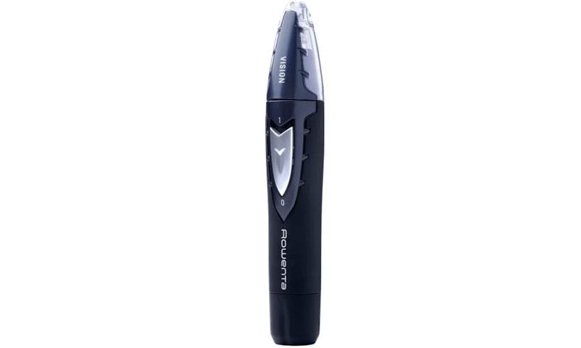 La cote s'ouvre avec une tondeuse pour le nez et les oreilles. Le coût moyen est de 1600 roubles. Le nettoyage humide de l'appareil est autorisé. Poids 50 gr. La couleur du corps est noire. Alimenté par une pile AA standard. Les lames sont en céramique. Le kit comprend une buse et une brosse de nettoyage.