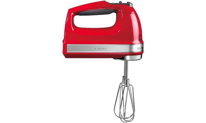 Batteur à main de couleur rouge, grise, blanche ou noire avec corps en plastique et poignée caoutchoutée. Dispose de 6 accessoires, dont 2 pétrisseurs, 2 fouets (dont un grand) et un mixeur à cocktail. Dans le travail utilise 9 vitesses. Les pièces jointes sont supprimées en appuyant sur le bouton correspondant sur le corps. Poids - 1,4 kg. Puissance - 85 W. Il y a un endroit pour ranger le cordon d'alimentation. L'emballage comprend un étui pour ranger les pièces jointes.