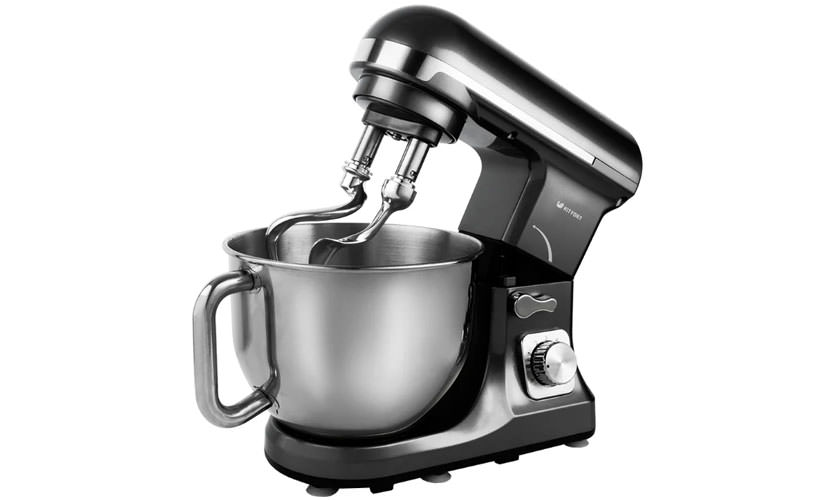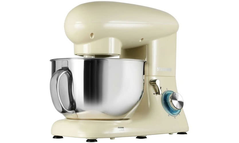 Le mélangeur fixe avec un corps en métal et une tasse en acier inoxydable d'une capacité de 4,8 l est disponible dans une large gamme de couleurs. Il a trois accessoires principaux - des crochets de pétrissage et un fouet. Il utilise 10 vitesses. Puissance - 800 W. Couvercle de tasse inclus.