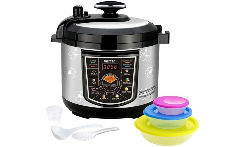 L'appareil d'un volume de 5 litres est en métal et en plastique. Possède 6 programmes automatiques et 14 réglages manuels. Parmi eux: multi-cuisson, bouillie de lait, céréales, pilaf, ragoût, friture, cuisson à la vapeur, yaourt, pâte. A la fonction de garder au chaud. Il est possible de retarder l'activation jusqu'à 24 heures. Le réglage de la température et du temps de cuisson est autorisé. Puissance 900 W. Prix: 2797 roubles.