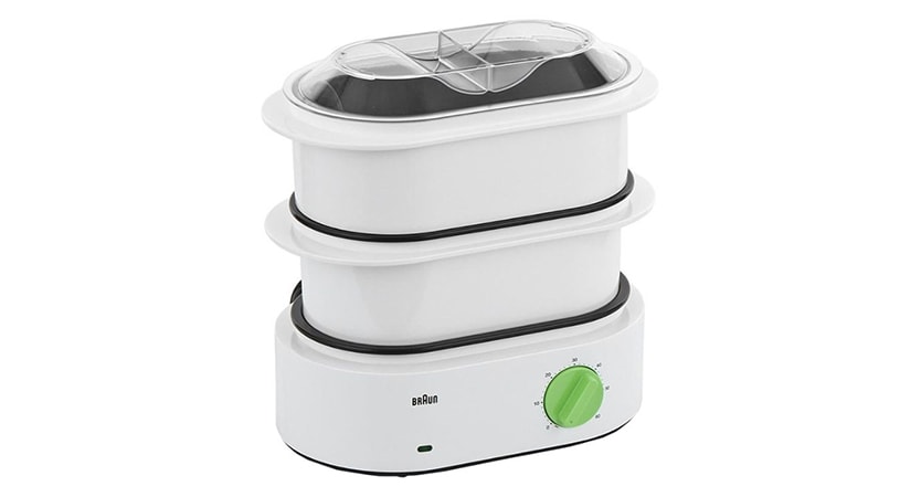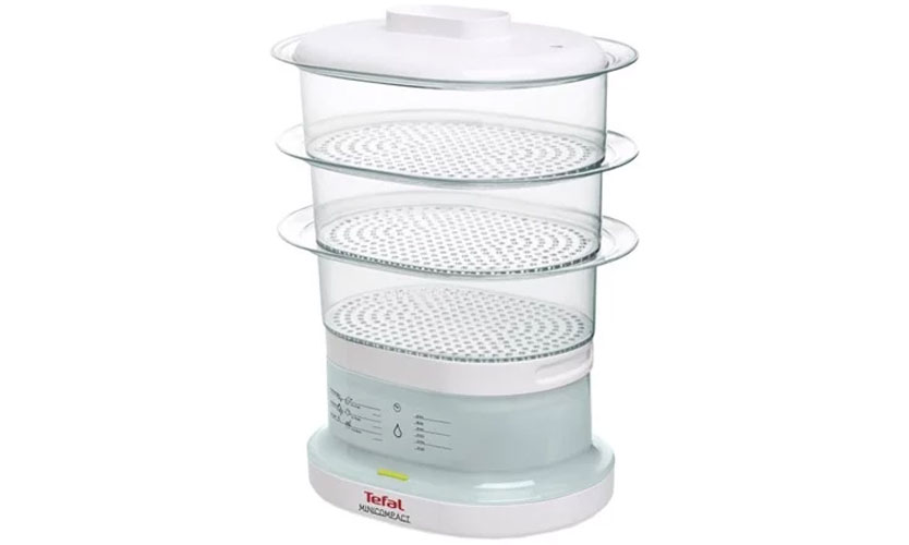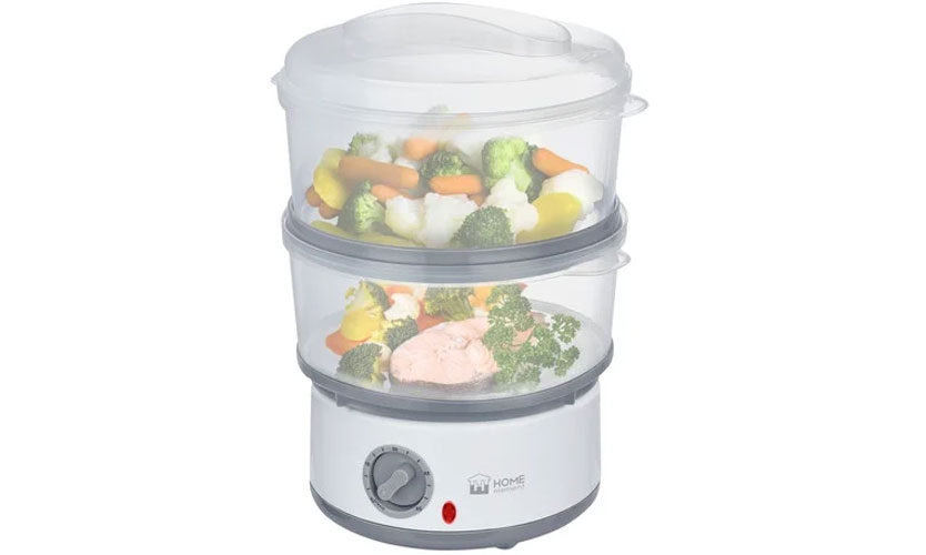 Prix - 2900 roubles. Haute puissance - 1000 W. Minuterie pendant 1 heure avec mise hors tension automatique. Protection contre la surchauffe à double niveau. La structure a trois niveaux à la fois. Associé à la puissance élevée, cela accélère la cuisson et vous permet de préparer le dîner pour la famille en une seule fois. Le volume total des plateaux est de 11 litres, chacun est équipé de poignées confortables. S'éteint automatiquement lorsqu'il n'y a pas d'eau, le niveau de liquide est indiqué par l'indicateur.Il est permis d'ajouter de l'eau à une unité en marche.