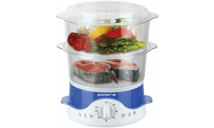 Un cuiseur vapeur pour 1 à 2 personnes, pour plus de personnes, il n'est pas très pratique de cuisiner en raison de la petite taille des bols. Si une vitesse de cuisson élevée est une priorité, mais que le budget d'achat est limité, il est préférable de prendre le Polaris PFS 0213 - sa puissance est légèrement supérieure, cela est discuté ci-dessous.