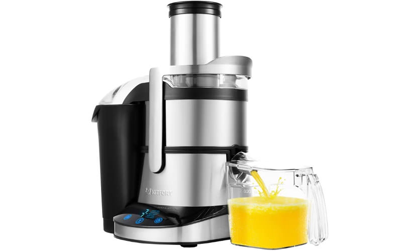 Le plus petit presse-étoupe du classement (20 x 20 x 31 cm). Le corps est en aluminium et non en acier inoxydable, comme les autres appareils centrifuges. Le plus petit verre (0,5 l). Le plus petit des modèles décrits (500 W) fonctionne à une seule vitesse. Le kit comprend un plateau de chargement.