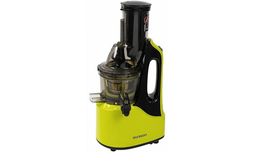 Pour le traitement de toutes sortes de fruits, légumes et baies grâce à la conception unique de l'unité de pressage. Il a une ouverture d'alimentation plus large (75 mm) que l'autre modèle du fabricant Oursson JM8002 pour charger des fruits entiers. Mais JM7002 n'est pas livré avec un bol de purée, un plateau. La maille filtrante en trois étapes empêche la pulpe de pénétrer dans le jus. Il existe une fonction d'auto-nettoyage comme le REDMOND RJ-912S. Le réglage du robinet du bec vous permet de préparer le mélange tout en tournant. Le plus grand des quatre extracteurs à vis (24 x 21 x 48 cm) et le plus grand poids (7,3 kg).