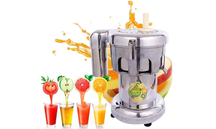 Un presse-agrumes en argent mesurant 43x35x45 cm Le corps est en alliage d'aluminium. Le chargement s'effectue par un trou dans le couvercle. Le filtre à mailles est en acier inoxydable. Le jus sort par le côté du bec. La mise en marche se fait par un bouton sur le boîtier. Le gâteau est jeté automatiquement dans un récipient d'une capacité de 1,5 litre. La productivité est de 12000 tr / min. Puissance 550 W. Poids 19 kg. Prix: 11630 roubles.
