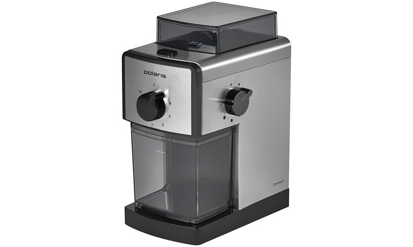 Le moulin à café PCG 1120 de la société américaine Polaris d'une puissance de 200 W est équipé d'un couteau rotatif en acier inoxydable, fonction d'un blocage moteur protecteur si le couvercle est ouvert. Le volume du compartiment pour les grains de café est de 50 g, ce volume est inférieur à celui du modèle précédent ENDEVER COSTA-1052. Il n'y a pas de jambes, et sans elles, la voiture «saute» à la surface, créant un bruit supplémentaire. Ils étaient dans le modèle précédent. Prix - 1080 roubles.