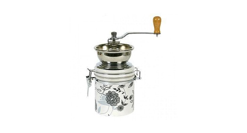 Modèle assez simple et élégant, équipé d'un simple mécanisme en acier inoxydable. Malgré le coût très modeste, l'appareil dispose d'un ajustement pour la finesse du broyage. Un beau pot avec un couvercle hermétique est fourni comme récipient pour le café moulu. C'est très pratique, car il vous suffit de cliquer sur les loquets pour stocker la poudre de café moulu.
