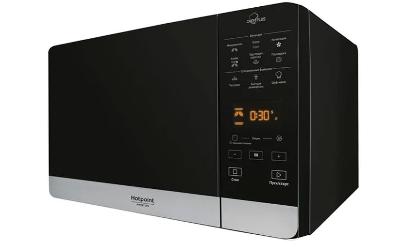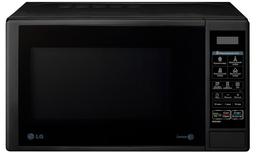 Micro-ondes extrêmement noir d'une marque célèbre. Il en coûte 6000 roubles. Le volume de la chambre est de 20 litres. Revêtement antibactérien, facile à nettoyer Power 700 W. Nombre de programmes - 32. Ils sont divisés en blocs: chef oriental, chef italien, chef français, chef russe. Il est difficile de les gérer sans instructions. Pour aider l'utilisateur, à l'intérieur du poêle, sur le cadre supérieur auquel la porte jouxte, il y a un décodage des programmes. Au fil du temps, une habitude se développe, mais contrôler le poêle ne peut pas être qualifié de simple. La décongélation n'est pas non plus facile. Il existe 4 programmes pour décongeler viande, poisson, volaille, pain + possibilité de réglage manuel. Pour un chauffage simple, il y a un démarrage rapide et des boutons pour ajouter du temps (10 secondes, 1 minute et 10 minutes) - à cet égard, tout est très pratique. Une caractéristique du modèle est la décongélation et le chauffage uniformes de la vaisselle, grâce à la technologie i-Wave. Il existe une fonction d'économie d'énergie. En mode veille, il atténue l'éclairage de l'écran et de la caméra. Il est peu probable que vous réalisiez des économies significatives grâce à cela, l'option est plus un marketing, comme on dit, une bagatelle, mais agréable.