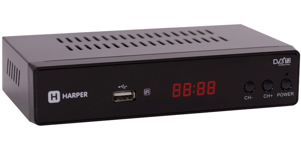 Un tuner économique de production nationale qui prend en charge les normes DVB-T / DVB-T2, DVB-C. Reçoit un signal de télévision terrestre, numérique et par câble dans la résolution maximale Full HD. A des connecteurs: entrée d'antenne - 2 USB (1 - avant et 1 - arrière), HDMI, entrée composite du bloc d'alimentation pour 5v. Contrôle - télécommande et boutons sur le corps. Options supplémentaires: radio, télétexte, guide des programmes, enregistrement sur clé USB, y compris avec décalage horaire ou minuterie, contrôle parental. Prix - 790 roubles.