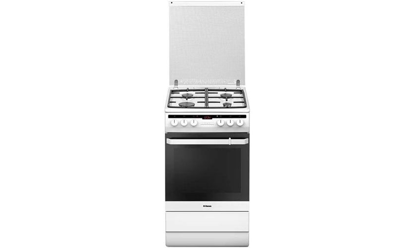 Modèle de dimensions 50x60x85 cm Four de 70 litres avec grill et éclairage. Panneau en émail. Il y a 4 brûleurs à gaz (un chauffage rapide). Un allumage automatique est fourni. Contrôlé par des boutons rotatifs. La plaque de cuisson est équipée d'un contrôleur de gaz. Grilles en fonte. Consommation d'énergie en classe A. Il y a une minuterie avec arrêt. Prix: 21050 roubles.