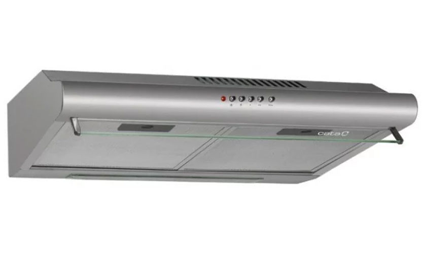 Le TOP est complété par un modèle suspendu d'une largeur d'assemblage de 60 cm Tuyau anti-odeurs d'un diamètre de 125 mm. Couleur argent. Equipé d'un moteur de 125 W. Intensité de travail 380 m3 / h, réglable pour 3 commutations. Il fonctionne en mode désodorisation ou en circulation avec filtration. Système de contrôle mécanique, boutons. Illuminé par une lampe à incandescence à raison de deux pièces. Le son n'est pas supérieur à 53 dB.