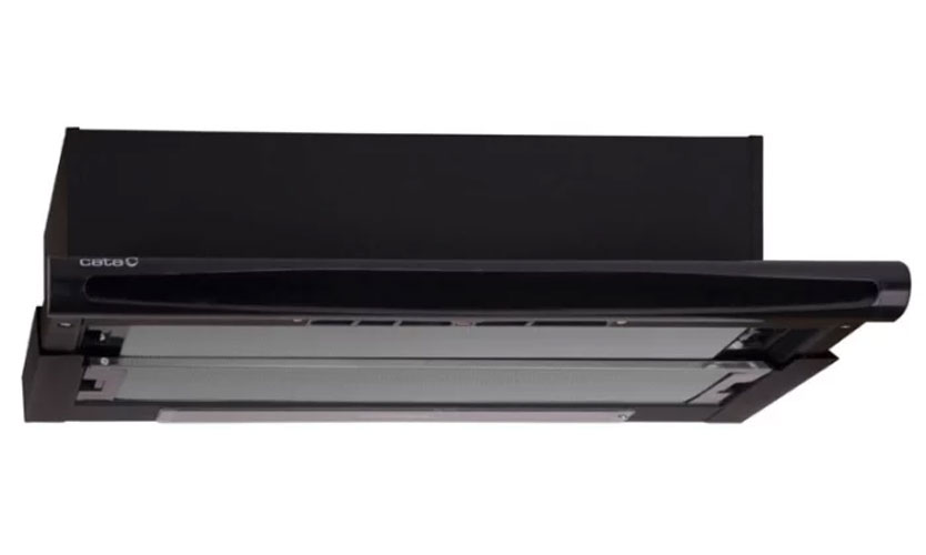 Conception intégrée rétractable. Dimension de montage largeur 60 cm Sortie d'odeur 120 mm. Le corps est en métal, noir. Installé deux moteurs, puissance 190 W. Vitesse de travail 600 m3 / h, 3 modes.