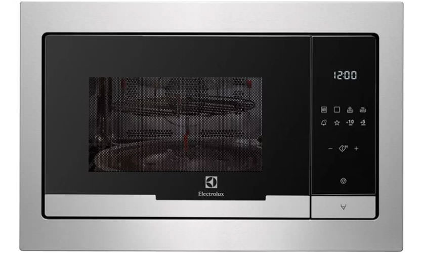 Four à micro-ondes de couleur acier, dimensions - 59,4 × 38,8 × 34,4 cm La puissance maximale du micro-ondes est de 800 W. Le volume de la chambre intérieure est de 20 litres. Le diamètre du plateau tournant est de 25,5 cm, ce qui peut être arrêté. Contient 5 fonctions préprogrammées: décongélation, décongélation + cuisson, pizza, produits semi-finis, chauffage. La porte s'ouvre avec un bouton latéral. La durée maximale de la minuterie n'est que de 59 minutes. Pas de gril. L'appareil est en acier inoxydable. Les 5 niveaux de puissance font un bon travail de réchauffage et de décongélation des aliments. Le panneau de commande est un affichage à 7 segments. Poids - 15 kg. Prix - 16880 roubles.