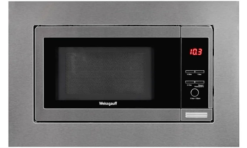 Four à micro-ondes intégré noir, dimensions - 59,3 × 38,8 × 29,1 cm.Puissance de rayonnement - 700 W. Volume interne - 20 litres. Le diamètre de la palette est de 24,5 cm et la doublure intérieure est en émail. Poids - 16,2 kg. Le modèle offre 7 niveaux de puissance et 9 programmes de cuisson automatiques. Il suffit de sélectionner le poids ou le nombre de portions, le type de plat et le micro-ondes sélectionnera lui-même le programme de cuisson. La durée maximale de la minuterie est de 95 minutes. Affichage LED, contrôle tactile. La fonction DÉMARRAGE RAPIDE est installée, grâce à laquelle, d'une seule pression, le four s'allume avec une puissance accrue. Contrairement au Weissgauff, le HMT-205 contient un gril à quartz de 900 W. Prix - 14190 roubles.