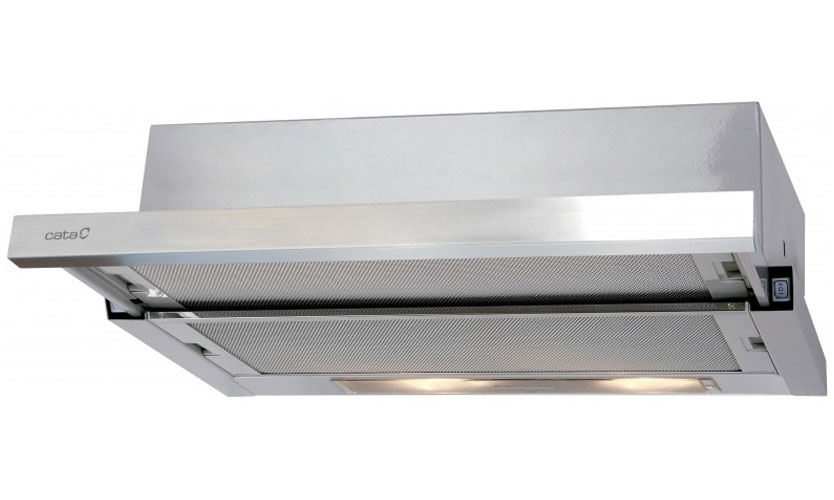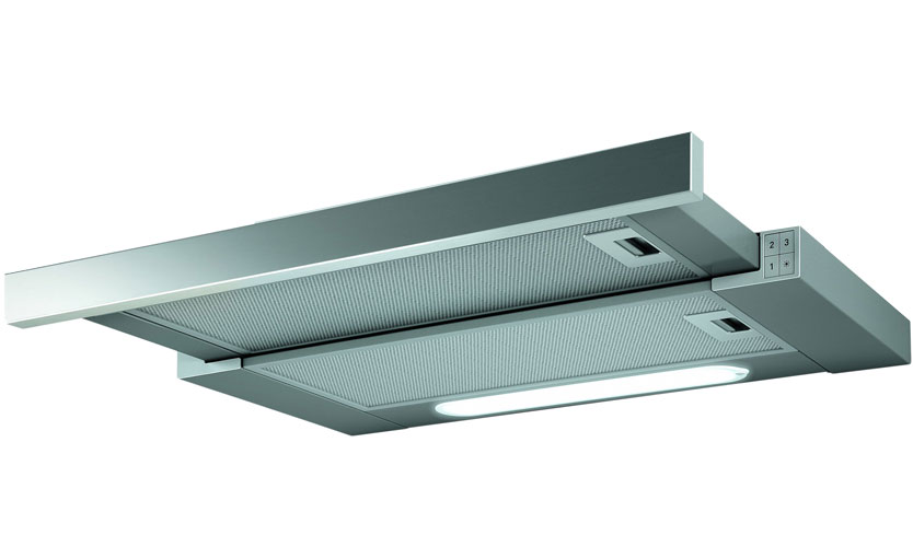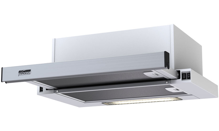 Modèle entièrement encastré (16x50x29,6 cm) de couleur argent. Trois modes de vitesse sont commutés avec un curseur. Productivité 850 mètres cubes m / h. Illuminé par deux halogènes de 20 W. Puissance 190 W. Bruit 56 dB. Il a une valve qui ne laisse pas l'air entrer dans la cuisine de l'extérieur. Prix: 7 790 roubles.