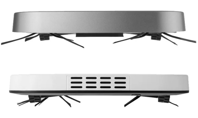 - Le robot démarre après avoir allumé le bouton. Fonctionne indépendamment jusqu'à ce que la batterie soit complètement déchargée, nettoyant toute la pièce. En passant sous les meubles, il y ramasse méticuleusement la poussière pendant 5 minutes, puis continue le travail commencé sur une surface libre.