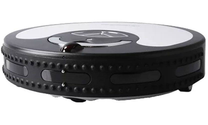 Le robot a la forme d'un cercle régulier, la surface du corps est mate. Au-dessus et sur les côtés, l'aspirateur est noir, gris de l'arrière. Un couvercle blanc est fixé en haut pour faciliter la recherche de l'appareil dans les pièces sombres.